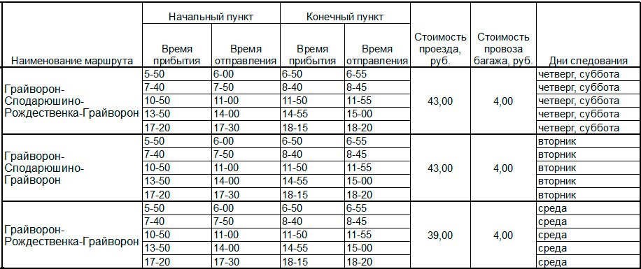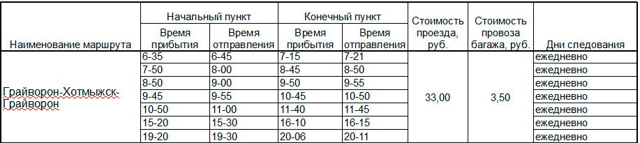 № 102 Маршрут г.Грайворон - с.Хотмыжск - г.Грайворон