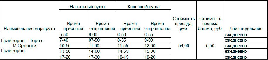 № 104 Маршрут г.Грайворон - с. Пороз- с.М.Орловка - г.Грайворон