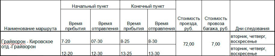 № 105 Маршрут г.Грайворон- с.Кировское отд. - г.Грайворон