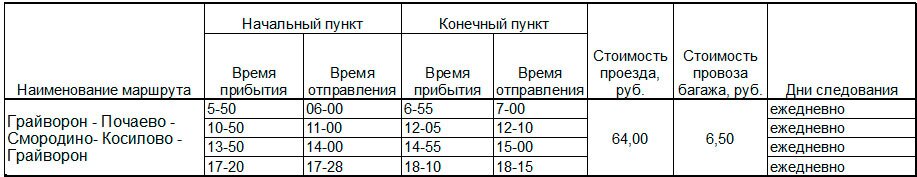 № 106 Маршрут г.Грайворон - с.Почаево-с.Смородино-с.Косилово - г.Грайворон