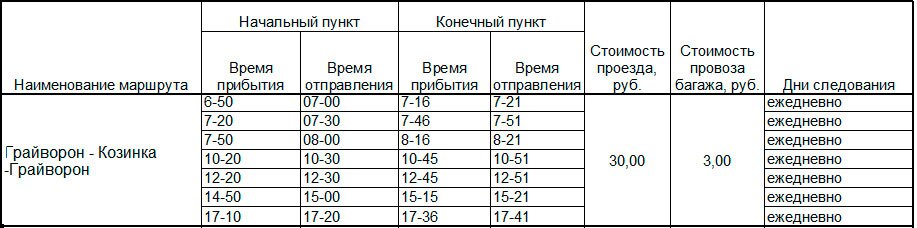 № 110 Маршрут г.Грайворон - с.Козинка - г.Грайворон
