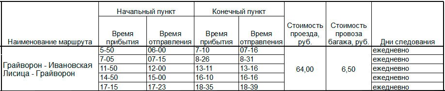 № 111 Маршрут г.Грайворон - с.Ивановская Лисица- г.Грайворон