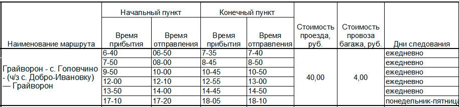 № 112 Маршрут г.Грайворон - с. Головчино