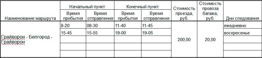 № 109 Маршрут г.Грайворон - с.Новостроевка - г.Грайворон
